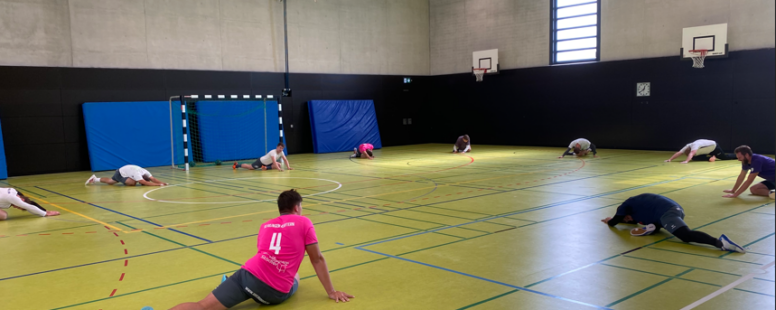 Das Spiel endete 26:21 (13:9) für das Team aus Blaustein. In der Kabine war es entsprechend still nach dem Abpfiff. Beim gemeinsamen Frühstück am Sonntag waren sich alle einig, da war mehr drin. Nachdem Frühstück lösten ein paar lustige Teambuildingaufgaben, ein lockeres Trainingsspiel, eine aktive Muskelentspannung und zum Abschluss des Trainingslagers viel Fleisch vom Grill, die Anspannung schnell auf.