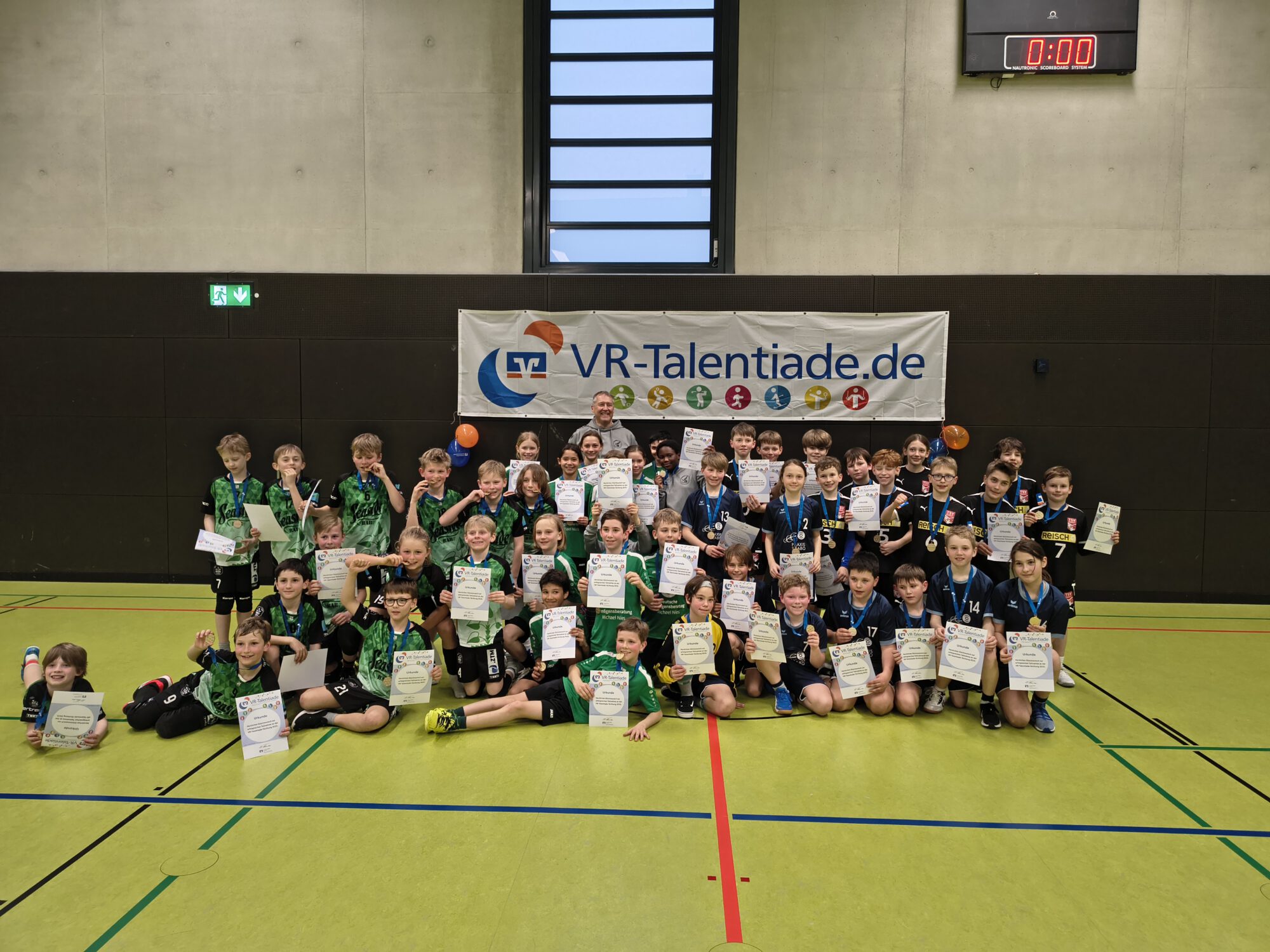 Am 29. März 2025 fand in der Sporthalle der TSG Ailingen die mit Spannung erwartete VR-Talentiade statt, die jungen E-Jugend Handball-Talenten aus der Region eine Plattform bot, ihr Können unter Beweis zu stellen.